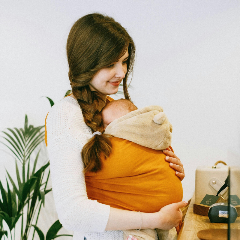 • Fortalece o vínculo entre mãe e bebé através do contacto e movimento;